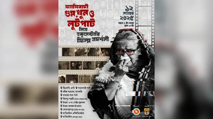 সংস্কৃতি বিষয়ক মন্ত্রণালয়ের উদ্যোগে আগামীকাল ঢাকার দশটি পয়েন্টে ফ্যাসিবাদী, গুম, খুন ও লুটপাট নিয়ে ডকুমেন্টারি ফিল্ম প্রদর্শনী হবে। বুধবার (১২ নভেম্বর) সন্ধ্যা ৬টা থেকে রাত ১০টা পর্যন্ত এ আয়োজনে চলচ্চিত্র